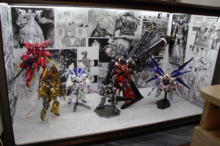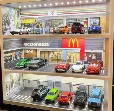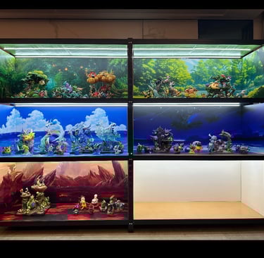Are your anime statues, car models, or Gundam kits just sitting in a plain cabinet, missing that spark? Check out these custom backdrop designs that bring your collection to life and steal the show! Case 1: Anime Statues in a Fantasy Realm Crafted for Pokémon statues, these backdrops create a mesmerizing fantasy world: the top features a lush forest full of vibrant flora, evoking a fairy-tale vibe; the middle showcases a bright blue sky with fluffy clouds and a shimmering ocean, making water-type Pokémon feel like they’re riding the waves; the bottom left depicts a fiery lava wasteland, where fire-type figures stand ready for an epic showdown. With rich HD details, these backdrops perfectly blend with the statues for an immersive experience! Case 2: Car Models at a Fast-Food Street Scene Perfect for car model collectors, this backdrop recreates a bustling fast-food street scene. With McDonald’s and 7-11 signs, plus a detailed parking lot, the car models look like they’re parked in a real urban setting, ready to hit the road! Case 3: Gundam in a Manga Epic A Gundam fan’s dream! This backdrop uses a collage of classic Gundam manga panels, featuring characters, mechs, and battle scenes. The Gundam models in front seem to leap off the pages, brimming with storytelling energy! Ready to Make Your Cabinet Pop? Whether you’re after fantasy, realism, or epic vibes, we can craft the perfect backdrop for you! Email or message us with your image and dimensions, and we’ll quote you a custom piece. Act now—turn your display into a viral sensation!